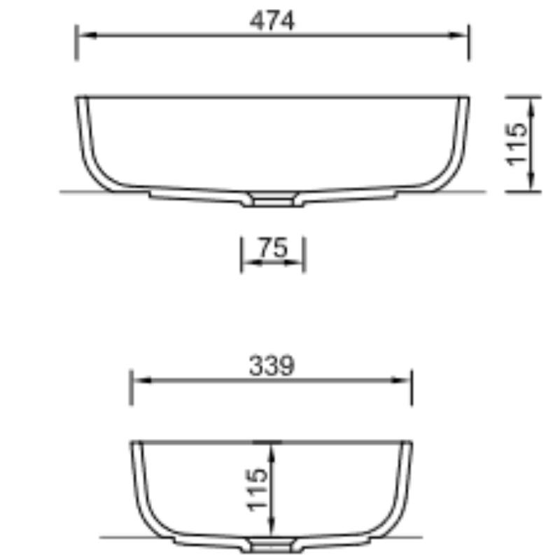 Abmessung: 474 Millimeter Länge; 339 Millimeter Breite; 115 Millimeter Höhe
