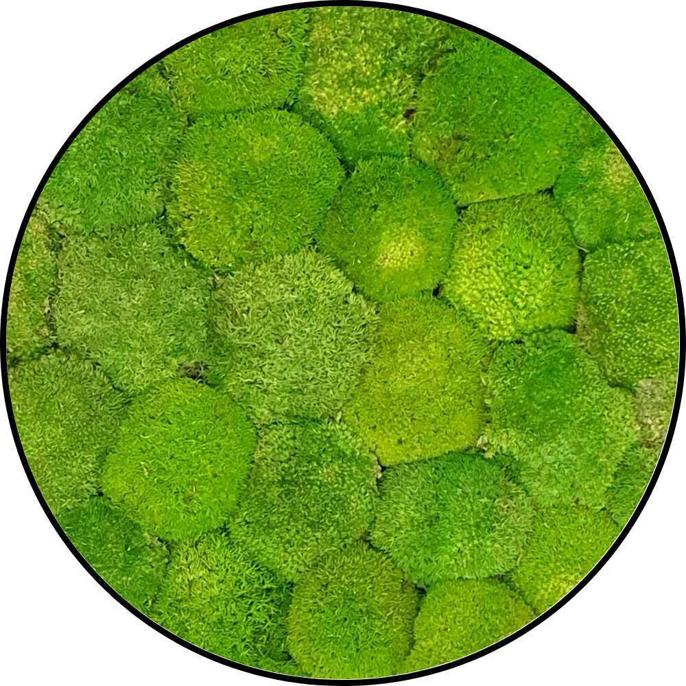 Moosbild rund Kugelmoos - Ob als größeres oder kleineres Bild, die Moosbilder mit einem Durchmesser zwischen 300 und 1000 Millimeter sind echte Hingucker in jedem Raum. Mit ein bisschen Fantasie wirken sie so, als würde man von oben durch ein Fenster auf einen Dschungel oder einen dicht mit Bäumen bestandenen Wald schauen. Jedes Moosbild fertigen wir mit viel Liebe zum Detail. Jedes Moosbild bringt ein Stück Natur in Wohn- oder Geschäftsräume.
